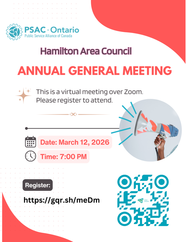 All PSAC members in good standing in the Hamilton area (Region 6) are welcome to attend.