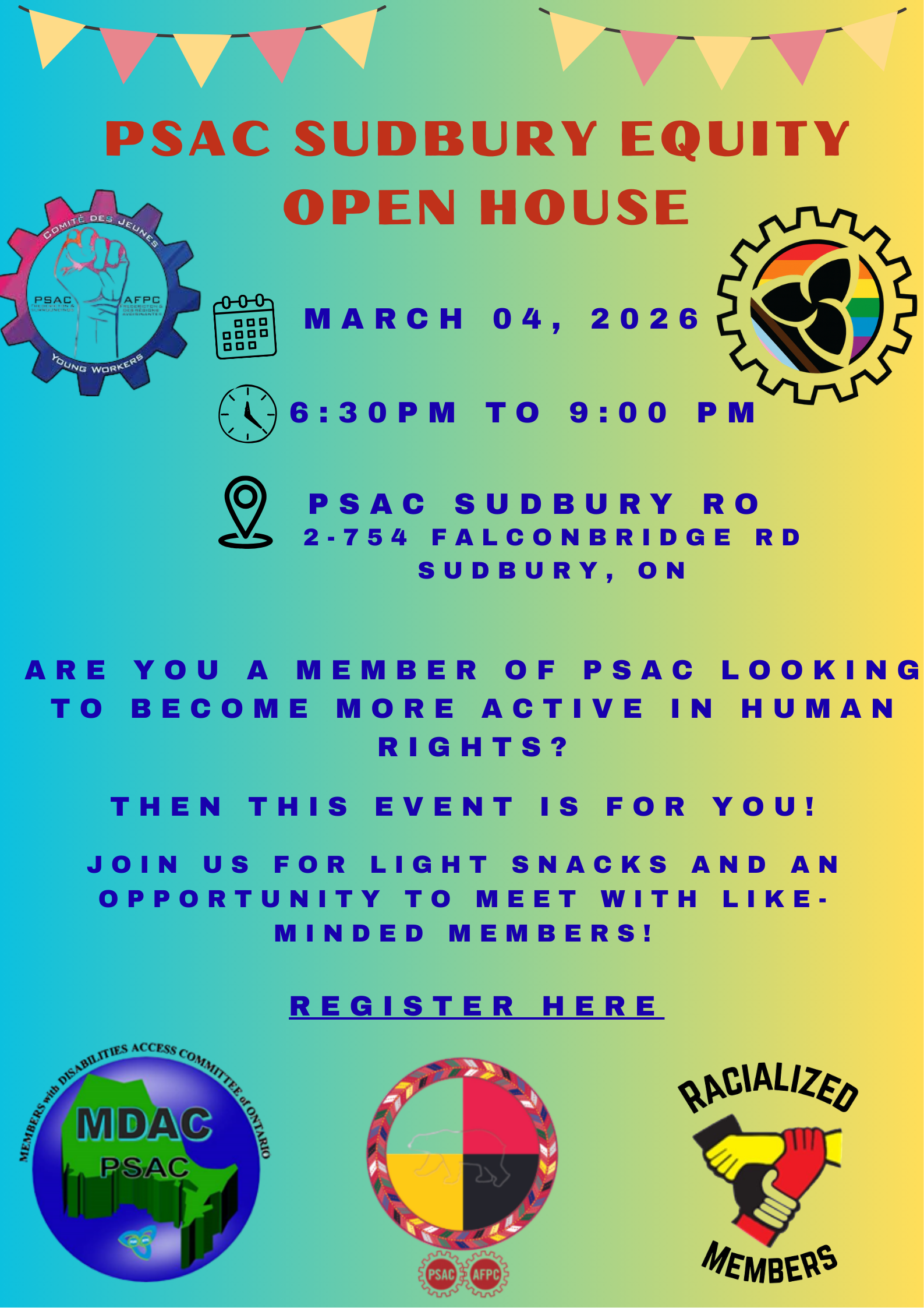 Join us in person at the PSAC Sudbury Regional Office!