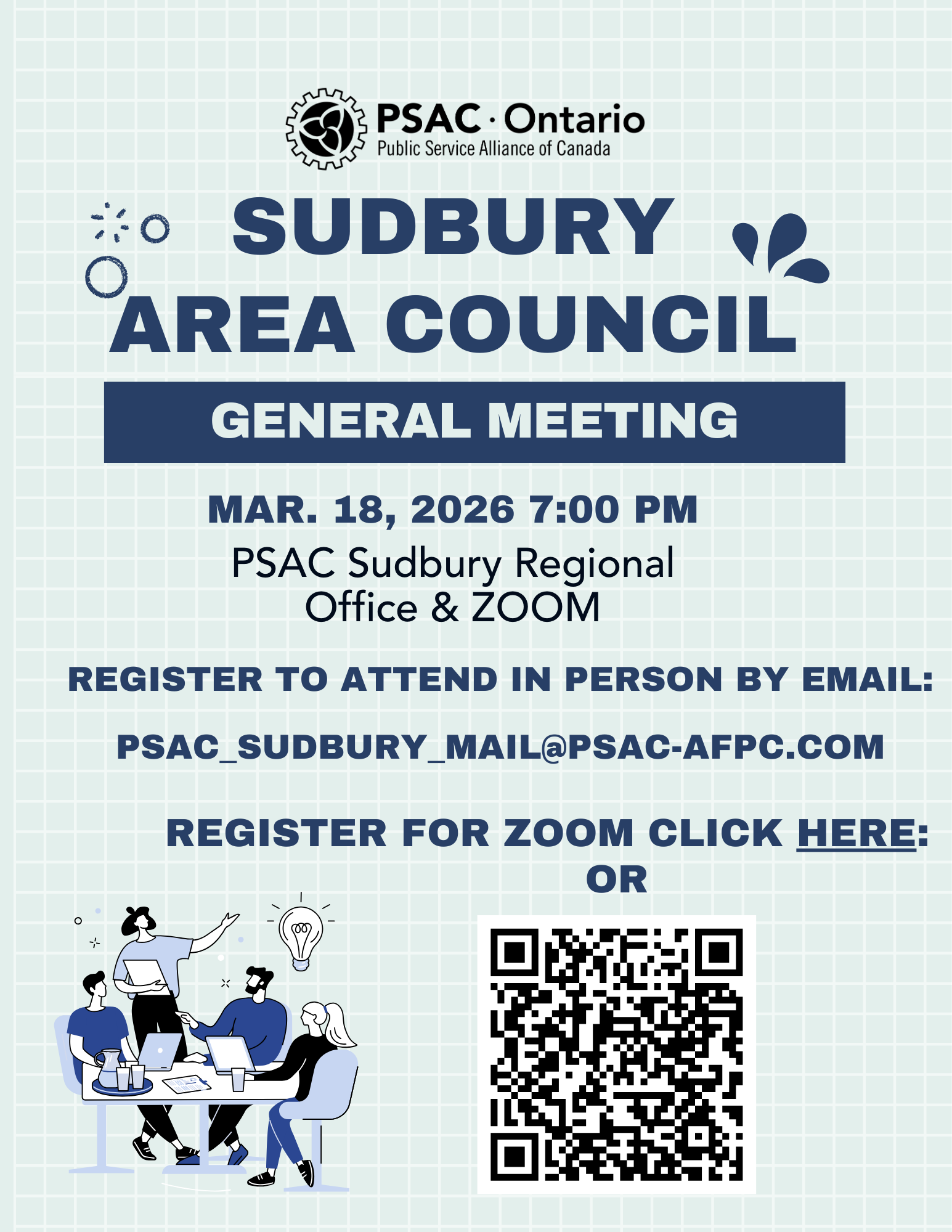 To register for in person attendance please email PSAC_Sudbury_Mail@psac-afpc.com