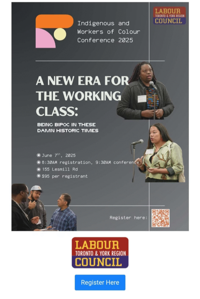 The PSAC Toronto Racialized Members Committee is pleased to offer an exciting opportunity for two members to attend the BIPOC event hosted by the Toronto Labour Council.